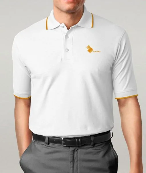 Áo thun đồng phục cá sấu TC-09 với thiết kế đơn giản, tinh tế và màu trắng tinh khiết sẽ giúp bạn tạo nên một phong cách thanh lịch và sang trọng. Đường viền cổ và tay áo màu vàng tạo điểm nhấn nhẹ nhàng.