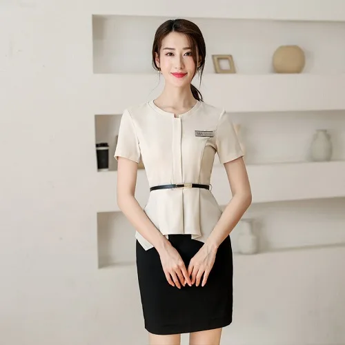 Đồng phục lễ tân TC-07 với thiết kế áo sơ mi có cổ, tay ngắn, form dáng ôm nhẹ màu kem mang đến phong cách nhẹ nhàng, thanh lịch và vô cùng chuyên nghiệp. Bộ đồng phục này không chỉ tạo cảm giác thoải mái cho người mặc mà còn giúp lễ tân thể hiện sự hiện đại, năng động và dễ gần trong mắt khách hàng, phù hợp với không gian làm việc tại các khách sạn cao cấp và các cơ sở dịch vụ chuyên nghiệp.