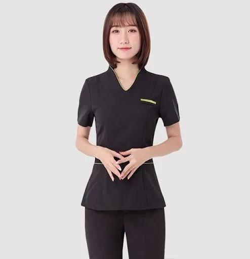 Màu đen là lựa chọn tuyệt vời cho những bộ đồng phục, mang đến sự sang trọng và thanh lịch. Màu đen cũng rất dễ bảo quản và có thể dễ dàng kết hợp với các phụ kiện khác, tạo điểm nhấn hoàn hảo cho bộ trang phục. Đây là màu sắc mang lại cảm giác quyền uy và sự chuyên nghiệp, rất thích hợp cho môi trường làm việc trong các salon nail. - Kiểu dáng: