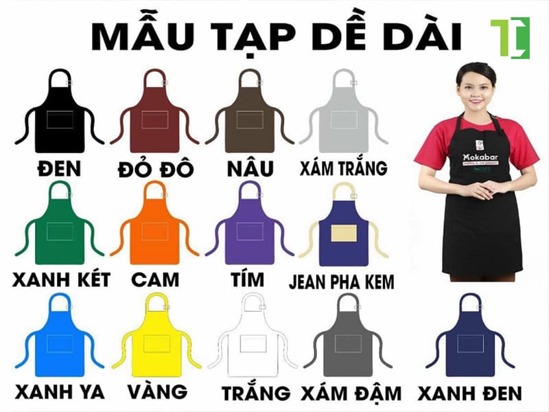 Màu sắc: Màu sắc của tạp dề nên phù hợp với màu sắc nhận diện thương hiệu của công ty để tạo sự thống nhất và chuyên nghiệp.