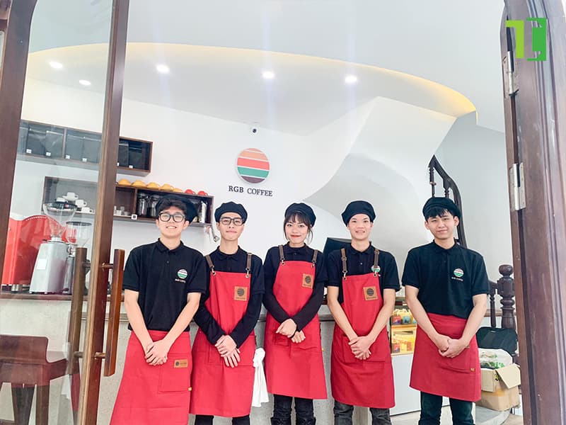 Mẫu tạp dề đồng phục cho quán cà phê và trà sữa: Tạp dề đồng phục cho quán cà phê và trà sữa thường có thiết kế đơn giản, thời trang và bắt mắt, giúp nhân viên thể hiện sự chuyên nghiệp và thân thiện.